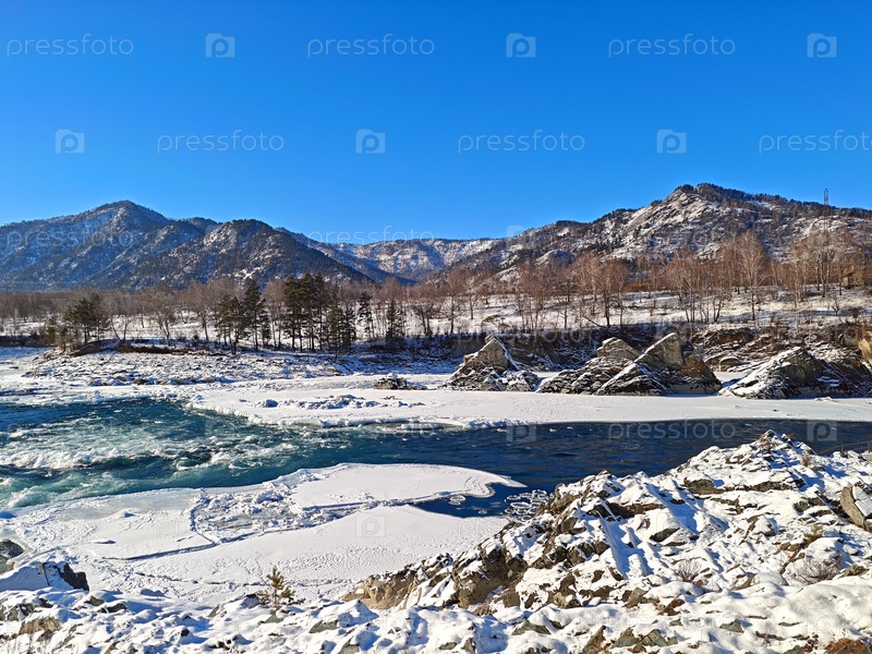 Река Катунь и зубы дракона в республике Алтай зимой
