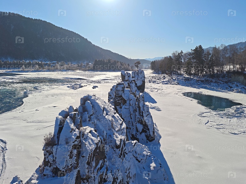 Река Катунь и зубы дракона в республике Алтай зимой