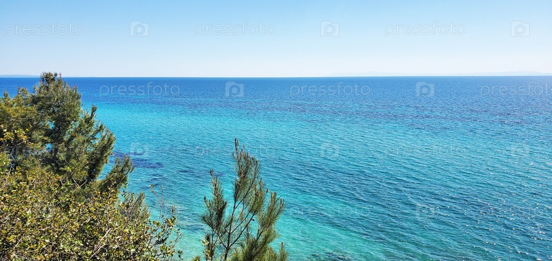 Вид на бесконечное голубое море с крутой скалы, красота в природе. путешествие или место отдыха во время летних каникул или праздников
