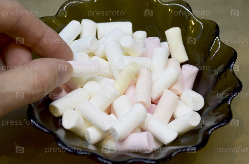 многоцветные десертные батончики маршмелоу в стеклянной миске, крупный план. вкусная, мягкая сладость для детей и взрослых. высококалорийная пища. нездоровая диета