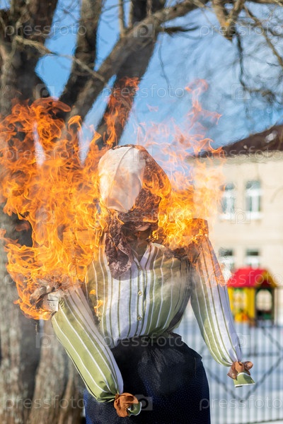 Чучело Масленицы горит. Кульминация праздника прощания с зимой и бедами