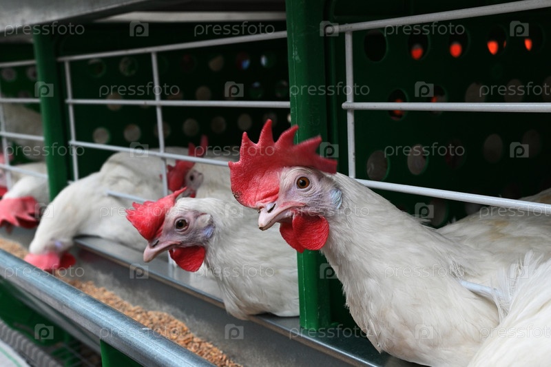 Куры в клетке на ферме