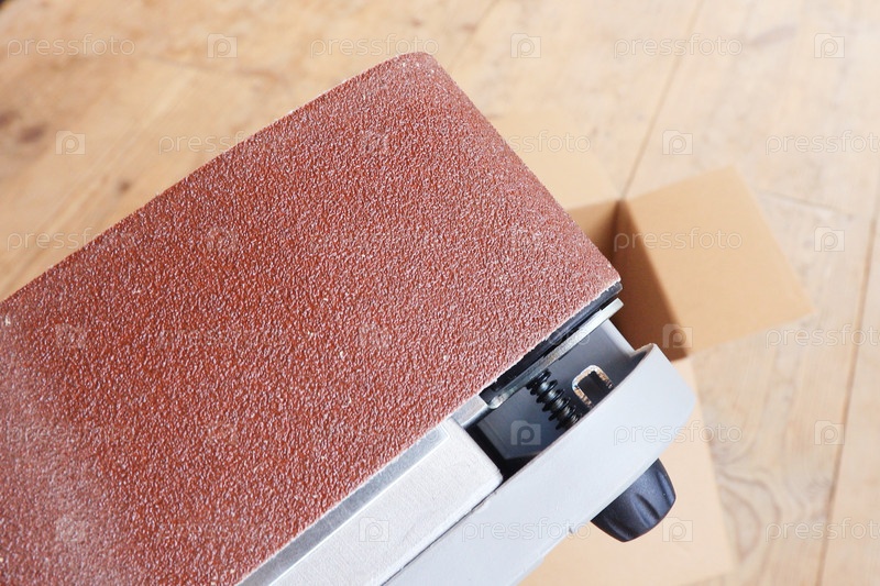 Наждачная поверхность крупным планом для зачистки деревянного пола в частном доме