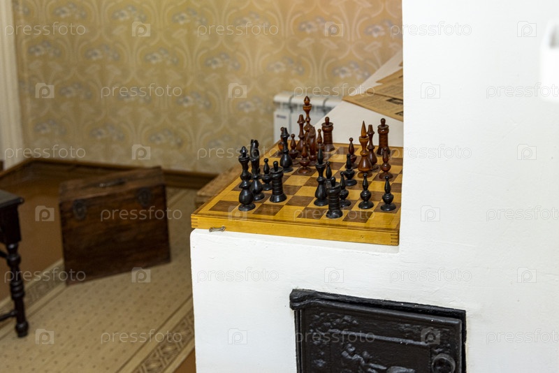 Интригующий шахматный набор, расставленный на русской печке