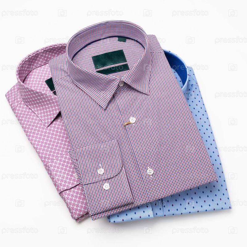 Три новые сложенные рубашки с длинными рукавами на белом фоне