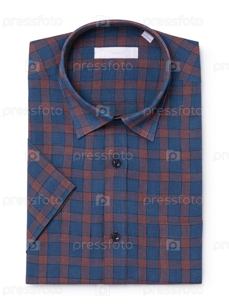 Линовая рубашка с коротким рукавом в синих красных глухих оттенках изолирована на белом фоне, верхний вид