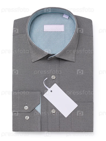 Серая сложенная классическая рубашка с длинными рукавами, футболка с абстрактным рисунком ромбовой ткани изолированной на белом фоне, шаблон для дизайнеров