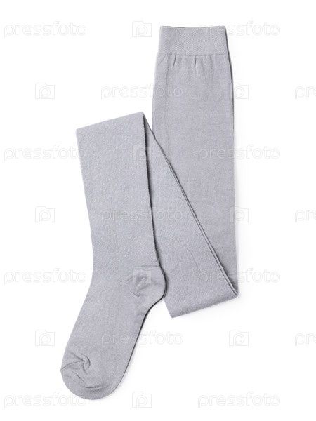 Новые сложенные седые детские колготки, изолированные на белом фоне, вид сверху