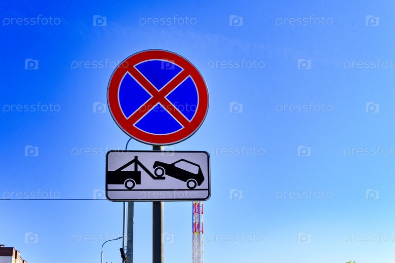 Городской пейзаж. Дорожный знак 3.27. «Остановка запрещена» , 8.24 «Работает эвакуатор» . Воронеж