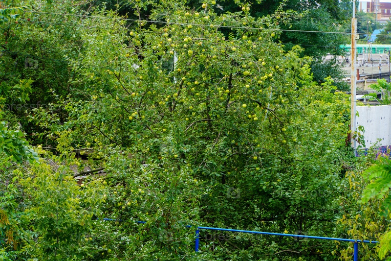 Городской пейзаж. Яблоня в частном секторе. Воронеж