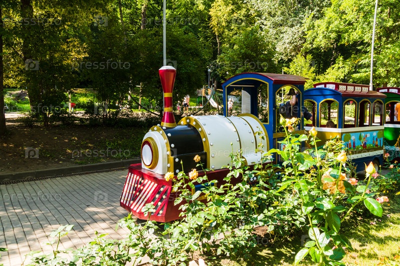 Городской пейзаж.Детская аттракционная "Паровоз" в центральном парке.Воронеж