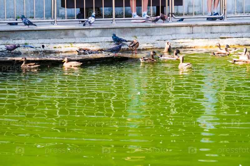 Городской пейзаж. Утки в центральном парке. Воронеж