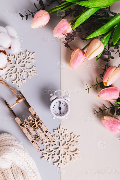 будильник между зимой и летом, в день весеннего равноденствия верхний и вертикальный вид