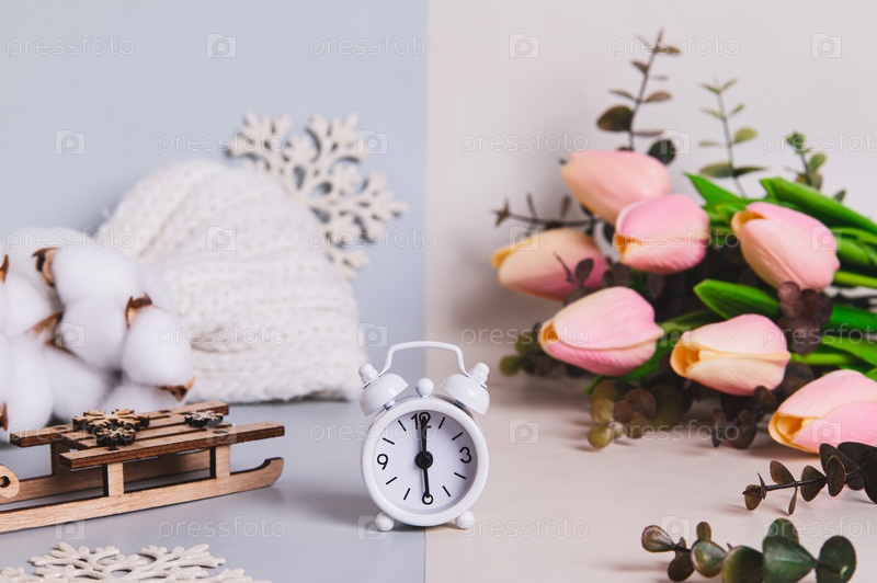 Концепция весеннего равноденствия, время между снегом и цветами