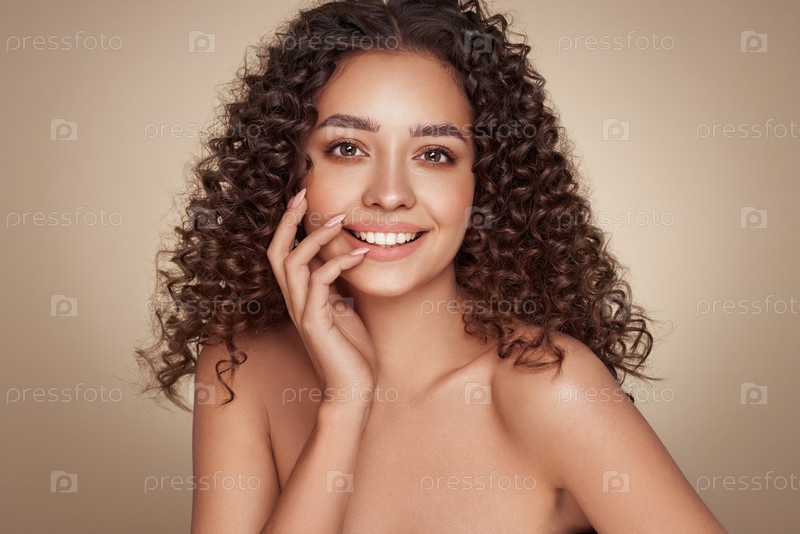 Красивая улыбающаяся женщина с афро локонами