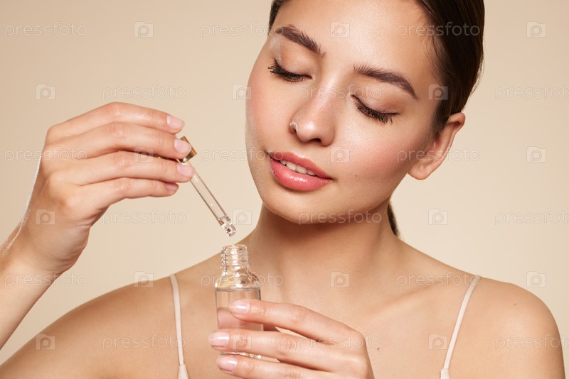 Женщина держит косметическую банку с масляной сывороткой
