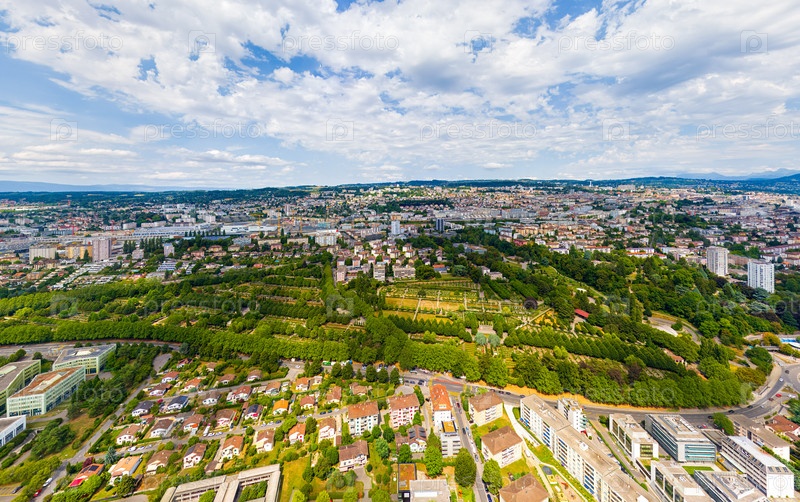 Лозанна, Швейцария. кладбище Боа-де-Во. панорама города летом. вид с воздуха