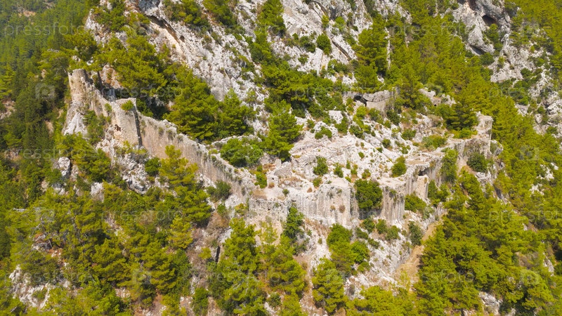 Какалар, Аланья, Турция. вид из воздуха на замок Алара туристическая достопримечательность и место путешествий в летний сезон