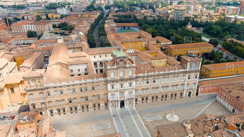 Дворец герцогского дворца Модена Исторический центр Лето, вид с воздуха