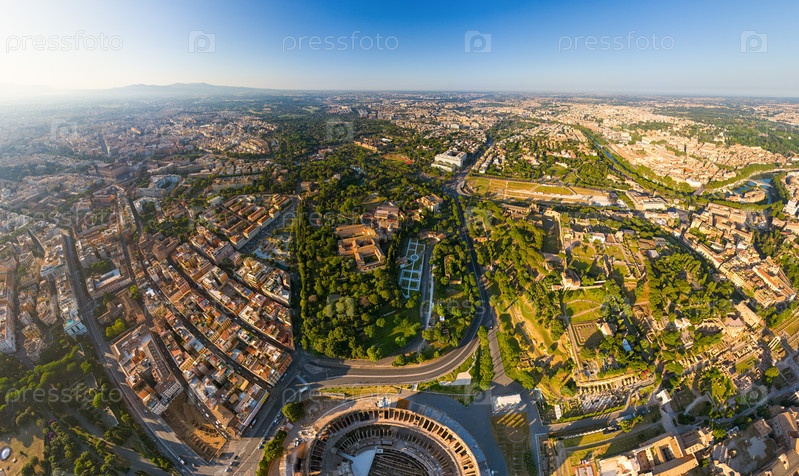 Рим, Италия. римский форум. город в пределах досягаемости. панорама города летом утром. вид с воздуха