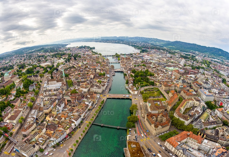 Цюрих, Швейцария Панорама города в пасмурную погоду Летний день Вид с воздуха