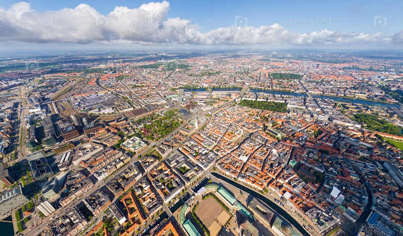 Копенгаген, Дания Панорама города летом Солнечная погода с облаками Вид с воздуха