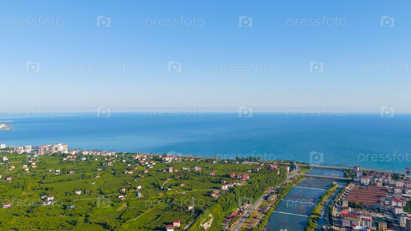 Ардешен, Турция. Панорама зеленых гор. Долина реки Фиртина. Солнечное утро, Aerial View