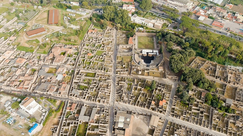 Помпеи - крупный древнеримский город, ныне крупномасштабный археологический комплекс.Общий вид сверху, Aerial View Pompeii