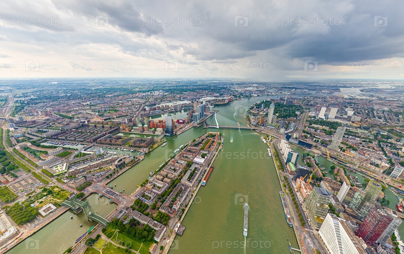 Роттердам, Нидерланды Панорама летнего города в дождливую погоду. Облака. Вид с воздуха