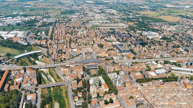 Исторический центр Пармы Железнодорожный вокзал - Парма Панорама города с воздуха Летний день, Aerial View Parma
