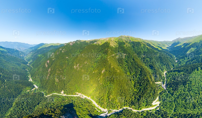 Альтиндере, провинция Трабзон, Турция. Парк долины Алтиндера. Изостоенный лес на склонах. Дорога через долину. Вид с воздуха