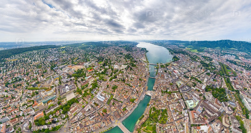 Цюрих, Швейцария Панорама города в пасмурную погоду Летний день Вид с воздуха