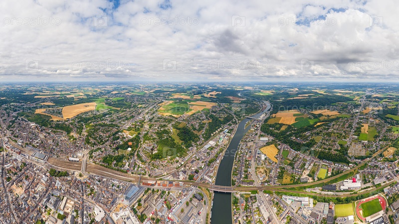 Намур, Бельгия.Панорама города.Летний день, облачная погода.Вид с воздуха