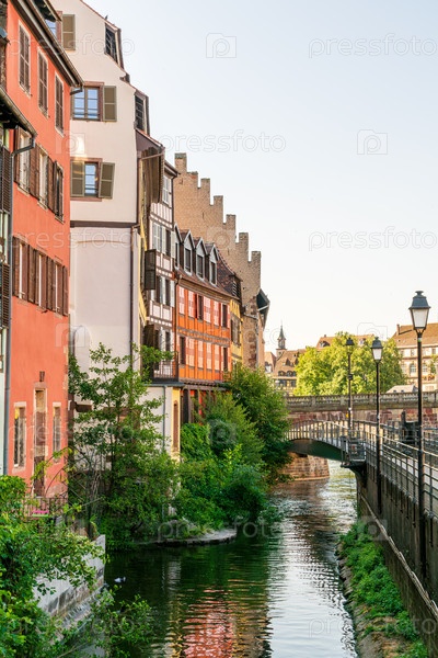 Страсбург, Франция.Маленький квартал Франции.Исторические дома на берегу реки Иль