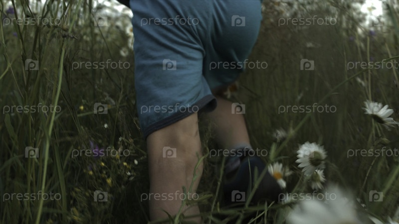 Маленький счастливый мальчик бежит через поле в парке. творческий. маленький ребенок на летнем естественном фоне, бегущий среди длинной травы