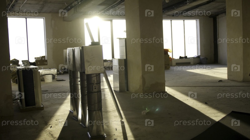 Интерьер новой комнаты без отделки в недавно построенном многоэтажном здании