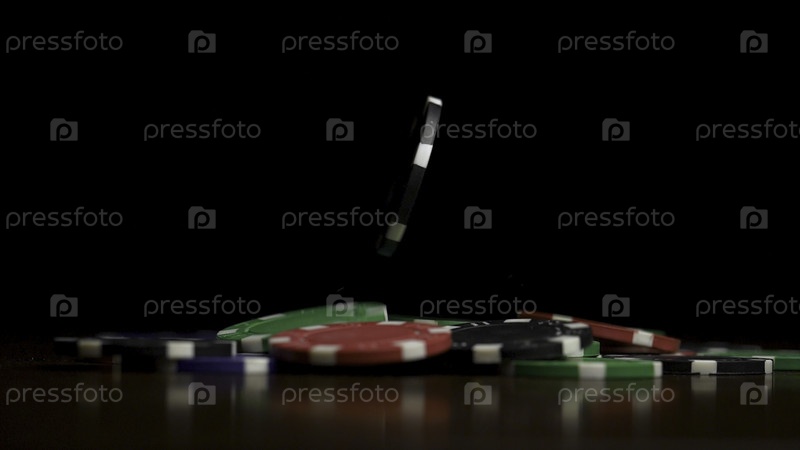 Падающие фишки покера, изолированные на черном фоне. Падающие фишки покера, изолированные на черном фоне. Красочные фишки покера, падающие к столу на черном фоне. Игровая фишка, летящая на черном фоне