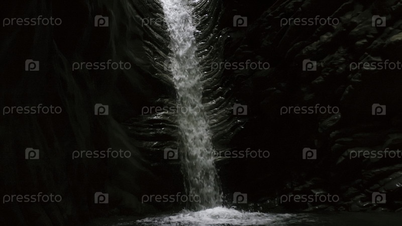 Естественный водопад.Креативный.Естественный водопад в скалах.Растения висят на склоне рядом с водопадом