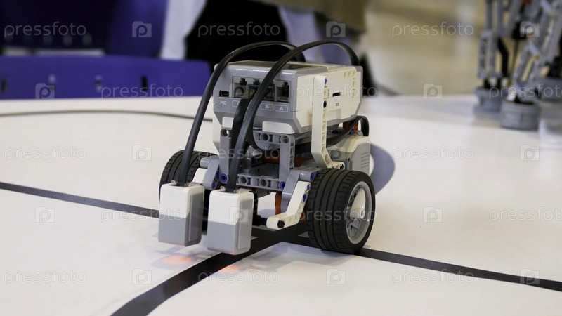 Новый робот-проект. Вождение по черной ленте. Самоконтроль с помощью детектора траектории. Робот электромобиля на колесах во время гонки