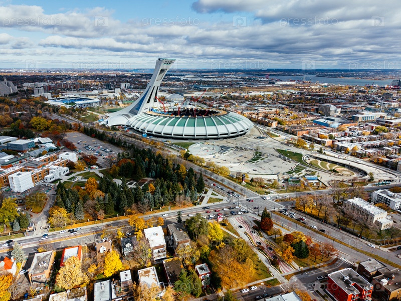 7 сентября 2025 года полет беспилотника над воздушным видом на реконструкцию Олимпийского стадиона и ботанический сад осенних цветов в Монреале, Квебек, Канада