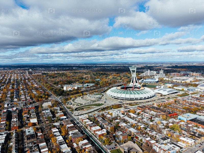 7 сентября 2025 года полет беспилотника над воздушным видом на реконструкцию Олимпийского стадиона и ботанический сад осенних цветов в Монреале, Квебек, Канада