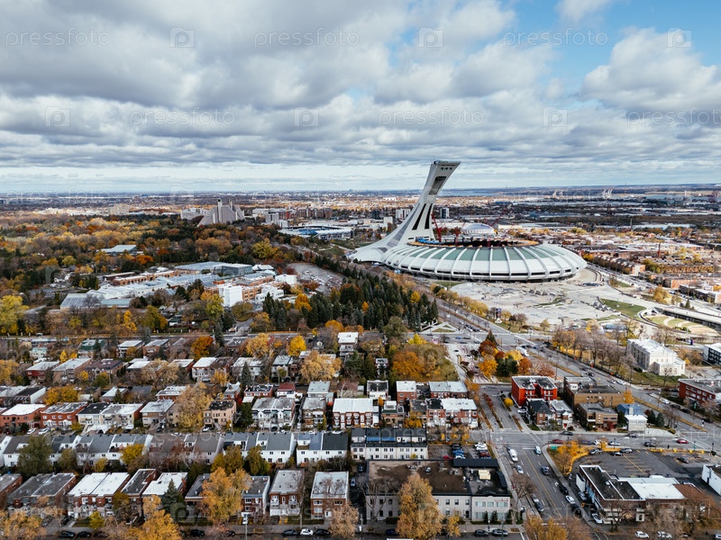 7 сентября 2025 года полет беспилотника над воздушным видом на реконструкцию Олимпийского стадиона и ботанический сад осенних цветов в Монреале, Квебек, Канада