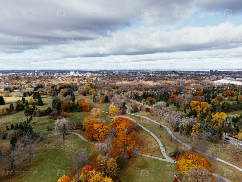 7 сентября 2025 года полет беспилотника над воздушным видом на реконструкцию Олимпийского стадиона и ботанический сад осенних цветов в Монреале, Квебек, Канада