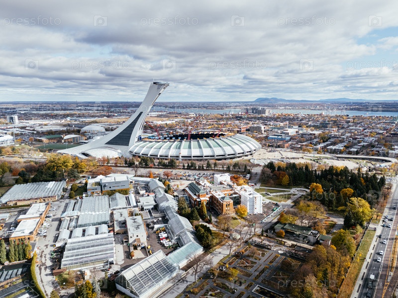 7 сентября 2025 года полет беспилотника над воздушным видом на реконструкцию Олимпийского стадиона и ботанический сад осенних цветов в Монреале, Квебек, Канада