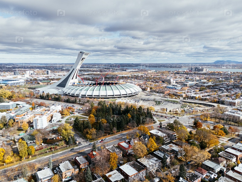 7 сентября 2025 года полет беспилотника над воздушным видом на реконструкцию Олимпийского стадиона и ботанический сад осенних цветов в Монреале, Квебек, Канада