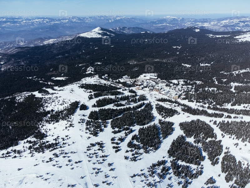 Панорамный вид на лыжную трассу с горами и лесом.Копаонический горнолыжный курорт в Сербии