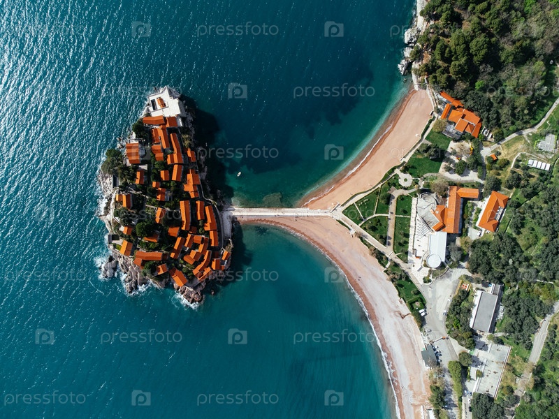 Вид с воздуха на остров Святого Стефана - отель . Черногория, Европа