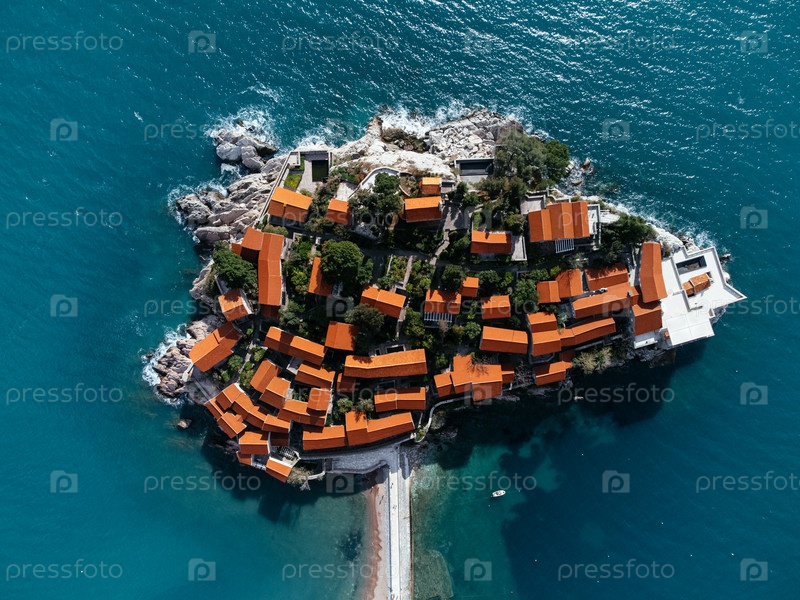 Вид с воздуха на остров Святого Стефана - отель . Черногория, Европа