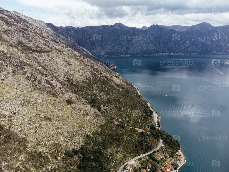 Вид с беспилотника на старый город Пераста в заливе Котор, Черногория