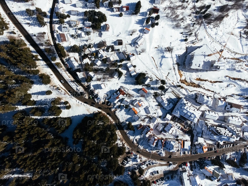 Горная деревня недалеко от горнолыжного курорта Копаоник, Сербия. вид с беспилотника сверху